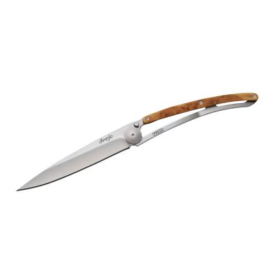 Hinter Deejo steht der Wunsch der beiden Firmengründer Luc Foin und Stéphane Lebeau aus Frankreich, dem Taschenmesser seine ursprüngliche Bestimmung zurückzugeben. Es gehört in die Hosentaschen und damit zurück in den Alltag. Aber das Deejo sollte auf keinen Fall ein Standardmesser sein. Und es musste ein Messer her, das nicht mehr vor einem guten Steak verzweifelt, wie viele mittelmäßige Messer in den Restaurants.„Ich benötige bitte nur eine Gabel, ein Messer habe ich selbst!“ Was für ein Lebensgefühl bei der Bestellung des Filetsteaks.