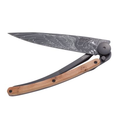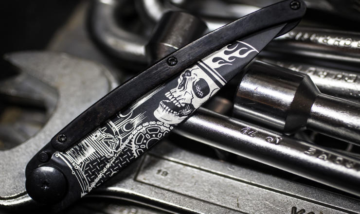 Ein Deejo ist viel mehr als nur ein leichtes Taschenmesser. Durch das Tätowieren der Klinge erhält jedes Messer seinen eigenen Touch. Genauso wie wir unsere Haut mit einem ganz persönlichen Symbol verzieren, verleiht ein Tattoo auf der Klinge jedem Deejo seine eigene Identität. Damit wird es einzigartig und zum persönlichen Objekt. Ein Teil von uns. Ein tätowiertes Deejo ist die erweiterte Personalität seines Besitzers.